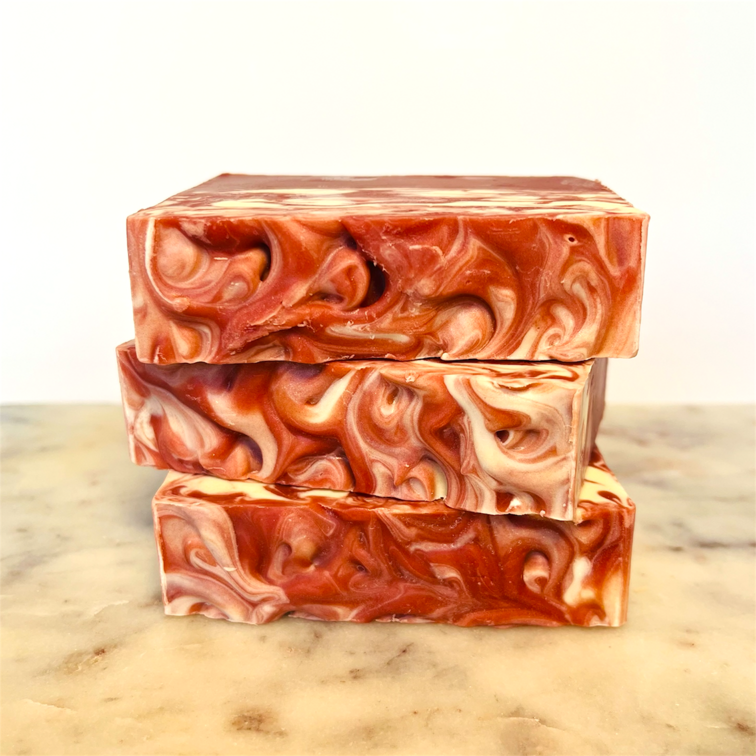 Olive oil, coconut oil, palm oil, water, lye, castor oil, sweet almond oil, fragrance, mica, titanium dioxide