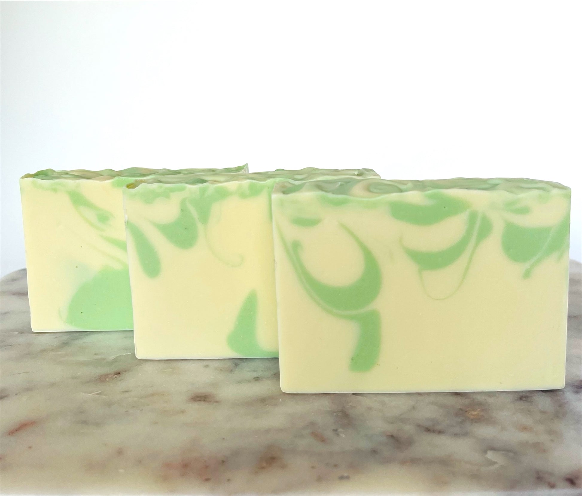Olive oil, coconut oil, palm oil, water, lye. castor oil, sweet almond oil, fragrance, mica, titanium dioxide